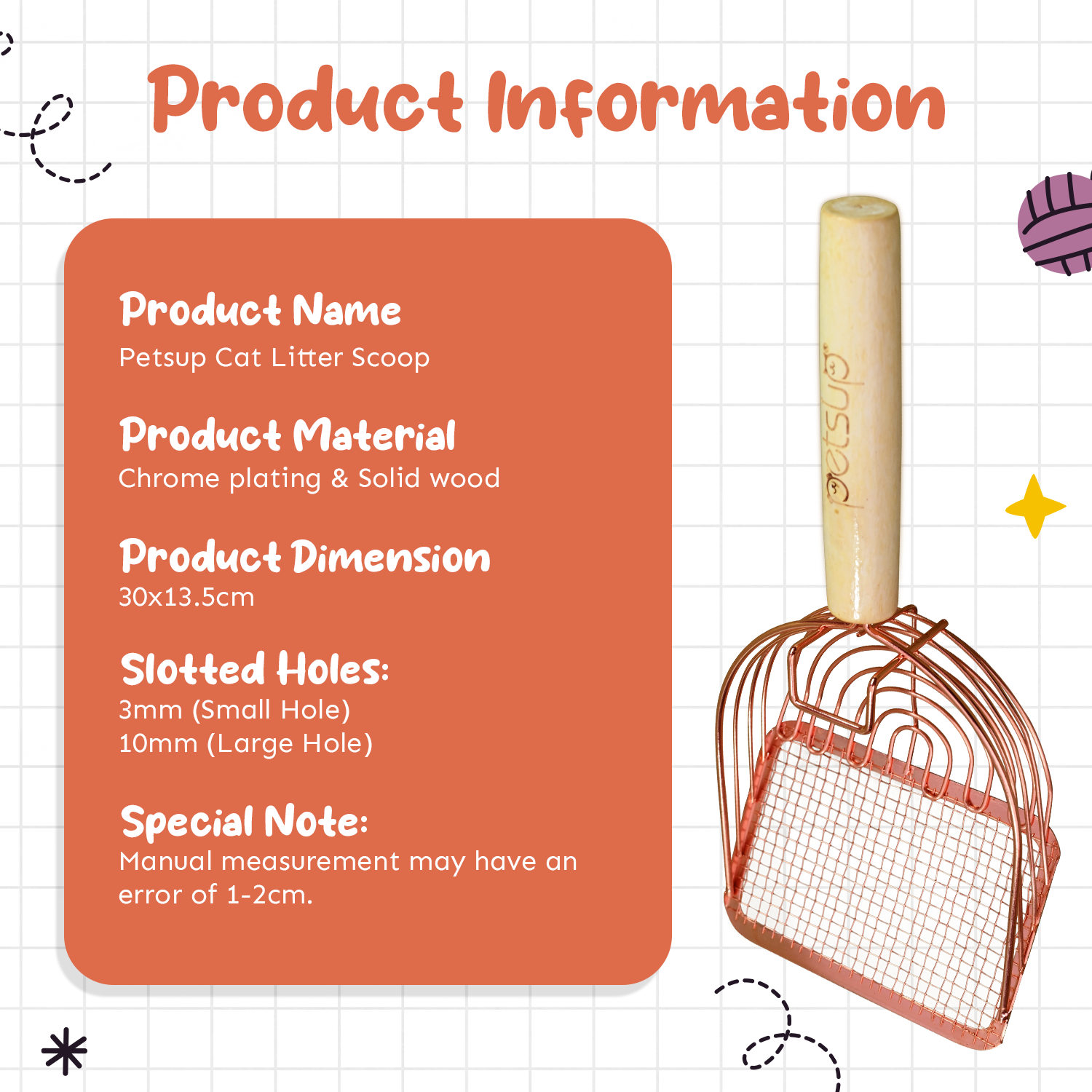 Designed with convenience in mind, this litter shovel features a comfortable wooden handle that ensures a secure grip and comfortable use, even during extended cleaning sessions. The ergonomic design minimizes hand fatigue, making it a breeze to maintain your cat's litter box.